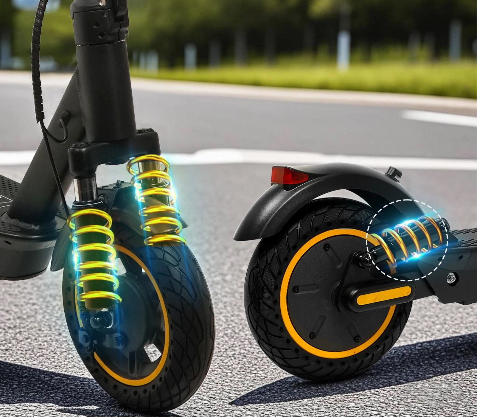 • 💡 Éclairage LED + amortisseurs pour plus de sécurité et de confort